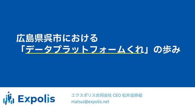 スマート社会産官学民協働まちづくりフォーラムにおけるエクスポリス合同会社の発表資料です。Expolis Cloud Platformを利用して構築された「データプラットフォームくれ」についての紹介資料となります。