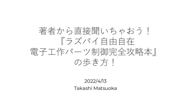 著者から直接聞いちゃおう! 『ラズパイ自由自在 電子工作パーツ制御完全攻略本』 の歩き方! 2022/4/13 Takashi Matsuoka