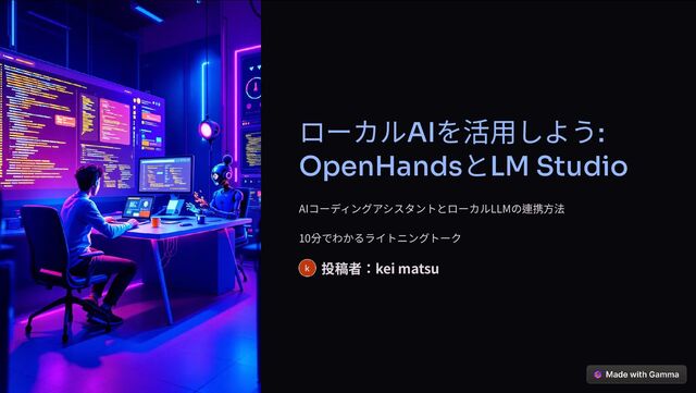 ローカルLLMの連携⽅法とOpenHandsの情報を簡単にまとめました。内容はGrok3と会話して書かせて、体裁はGammaです。