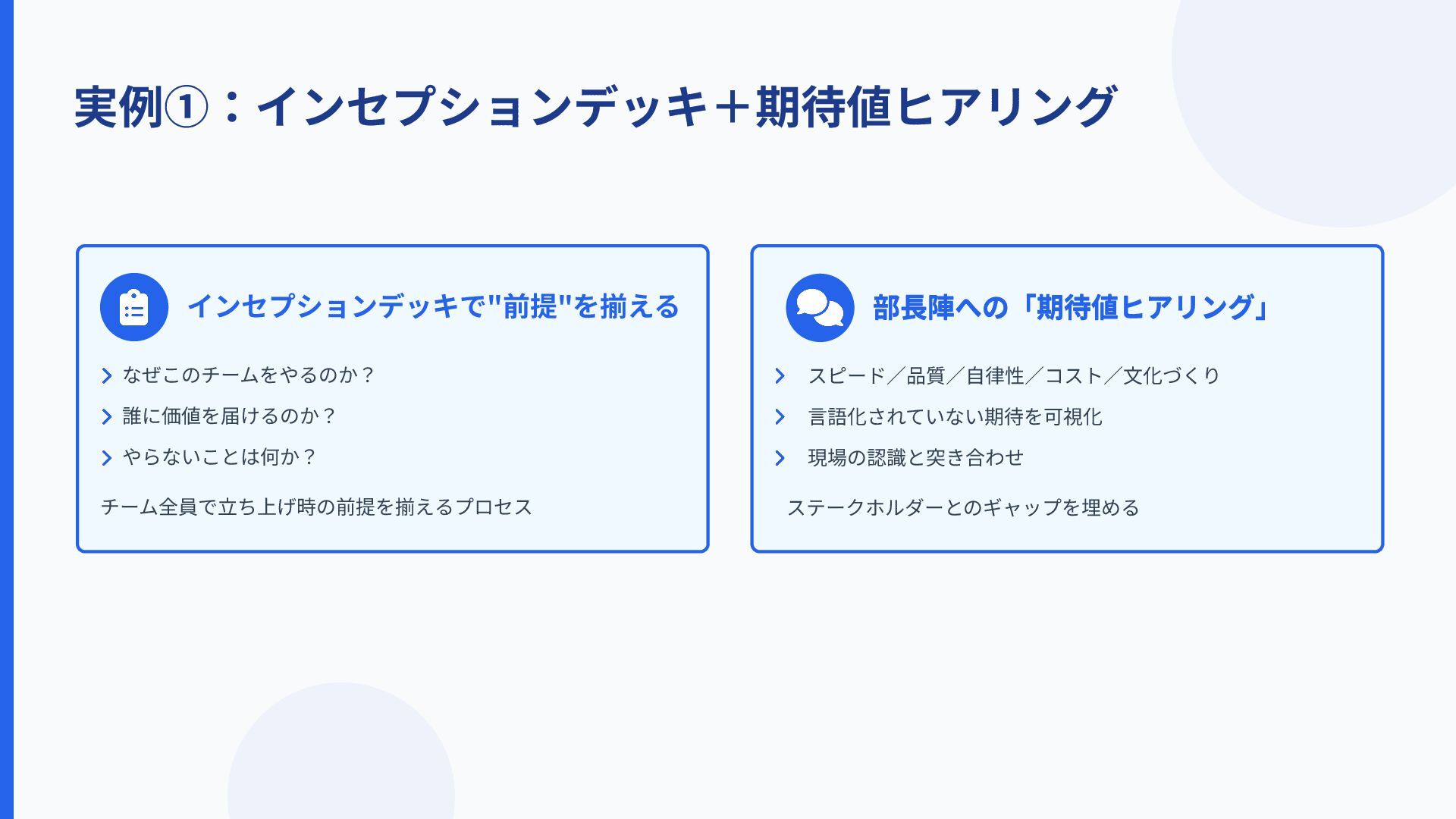 実例①:インセプションデッキ+期待値ヒアリング 部⻑陣への「期待値ヒアリング」