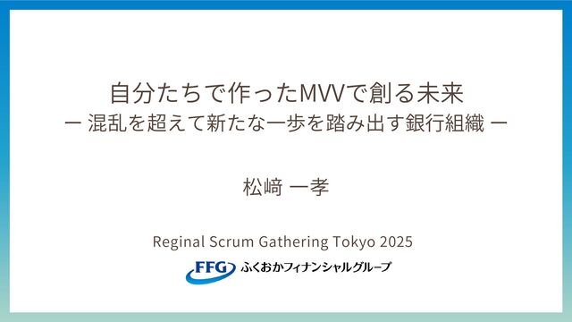 自分たちで作ったMVVで創る未来 ー 混乱を超えて新たな一歩を踏み出す銀行組織 ー 松﨑 一孝 Reginal Scrum Gathering Tokyo