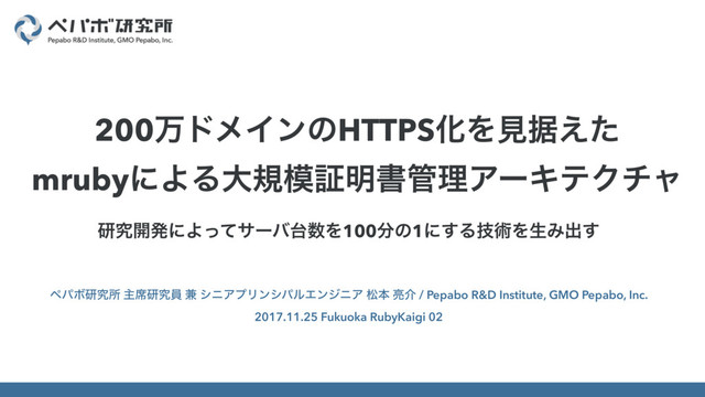 ペパボ研究所 主席研究員 兼 シニアプリンシパルエンジニア 松本 亮介 / Pepabo R&D Institute, GMO Pepabo, Inc. 2017.11.25 Fukuoka RubyKaigi 02