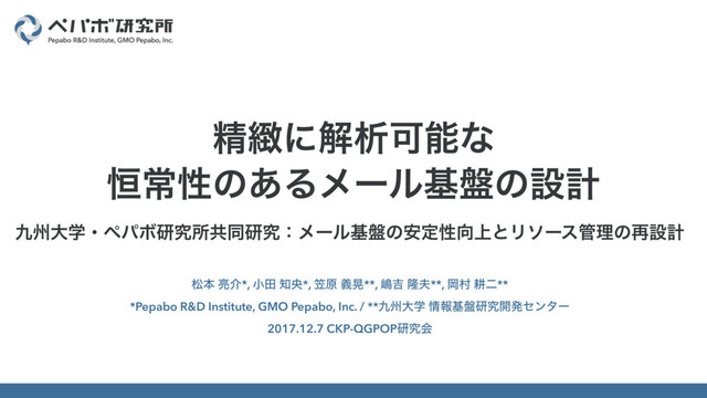 松本 亮介*, 小田 知央*, 笠原 義晃**, 嶋吉 隆夫**, 岡村 耕二** *Pepabo R&D Institute, GMO Pepabo, Inc. / **九州大学 情報基盤研究開発センター 2017.12.7 CKP-QGPOP研究会