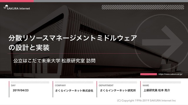 2019/04/24 さくらインターネット株式会社 さくらインターネット研究所 上級研究員 松本亮介 / まつもとりー / @matsumotory