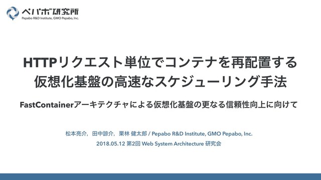 松本亮介,田中諒介,栗林 健太郎 / Pepabo R&D Institute, GMO Pepabo, Inc. 2018.05.12 第2回 Web System Architecture 研究会