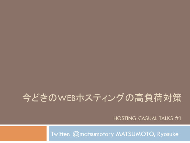 今どきのWEBホスティングの高負荷対策 HOSTING CASUAL TALKS #1 Twitter: @matsumotory MATSUMOTO, Ryosuke