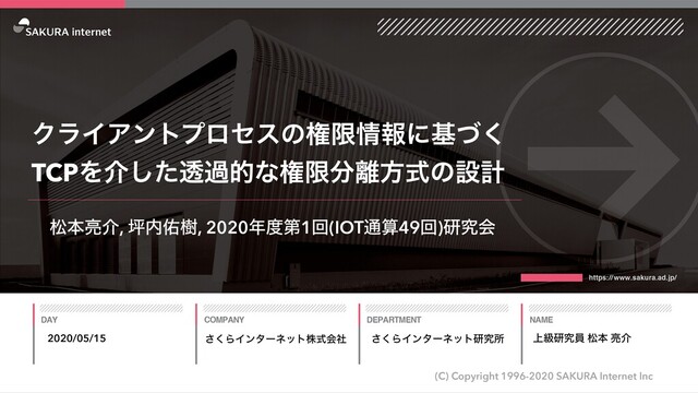 2020/05/15 さくらインターネット株式会社 さくらインターネット研究所 上級研究員 松本亮介 / まつもとりー / @matsumotory