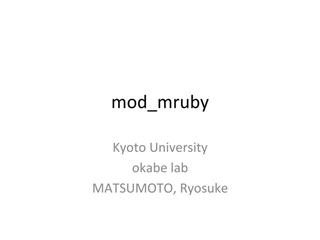 mod_mruby Kyoto University okabe lab MATSUMOTO, Ryosuke