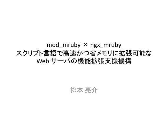 mod_mruby × ngx_mruby スクリプト言語で高速かつ省メモリに拡張可能な Web サーバの機能拡張支援機構 松本 亮介
