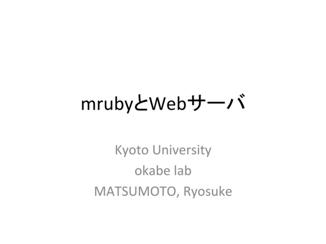 mrubyとWebサーバ Kyoto University okabe lab MATSUMOTO, Ryosuke
