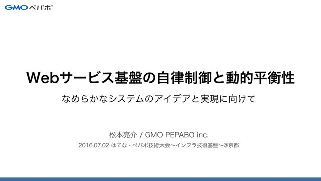 ͳΊΒ͔ͳγεςϜͷΞΠσΞͱ࣮ݱʹ͚ͯ দຊ྄հ(.01&1"#0JOD ͯͳɾϖύϘٕज़େձʙΠϯϑϥٕज़ج൫ʙ!ژ 8FCαʔϏεج൫ͷ੍ࣗޚͱಈతฏߧੑ