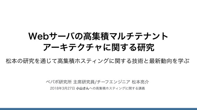 松本の研究を通じて高集積ホスティングに関する技術と最新動向を学ぶ