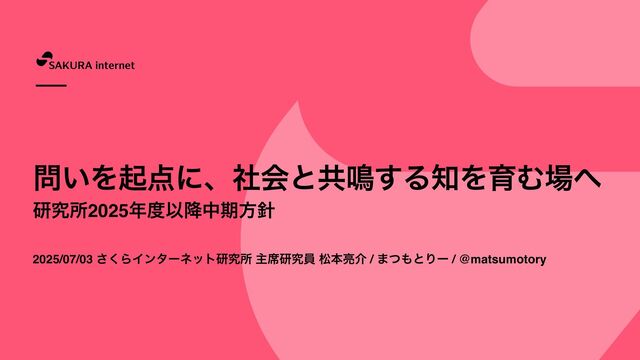 2025/07/03 さくらインターネット研究所 主席研究員 松本亮介 / まつもとりー / @matsumotory