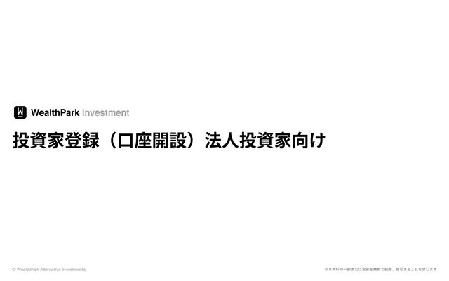 担当者さまの 本⼈確認書類 ご担当者さまの顔写真付き書類の以下いずれか1点 マイナンバーカード ∕ 運転免許証 ∕ 在留カード ∕ 運転経歴証明書 ∕ 特別永住者証明書 ③ 払い戻し⼝座の確認 払い戻し⼝座の確認のため、以下の1点をご⽤意ください。 • 銀⾏⼝座のキャッシュカード • ⼝座の通帳 • ネットバンキングの画像 ※ いずれも⼝座番号や⼝座名義がわかるもの ④ 委任状のご提出 ※必要な場合のみ 法⼈のご担当者さまが代表権を有する役員として登記されていない場合、委任状のご提出が必要となります。 委任状は投資家登録時にダウンロードが可能です。 委任状のダウンロード:xxxxxxxxx 必要書類 - 法⼈名義での登録 3