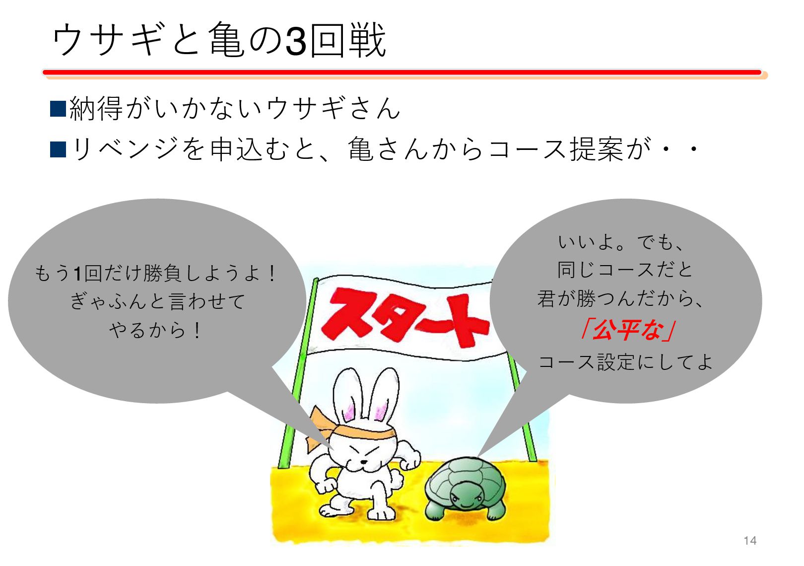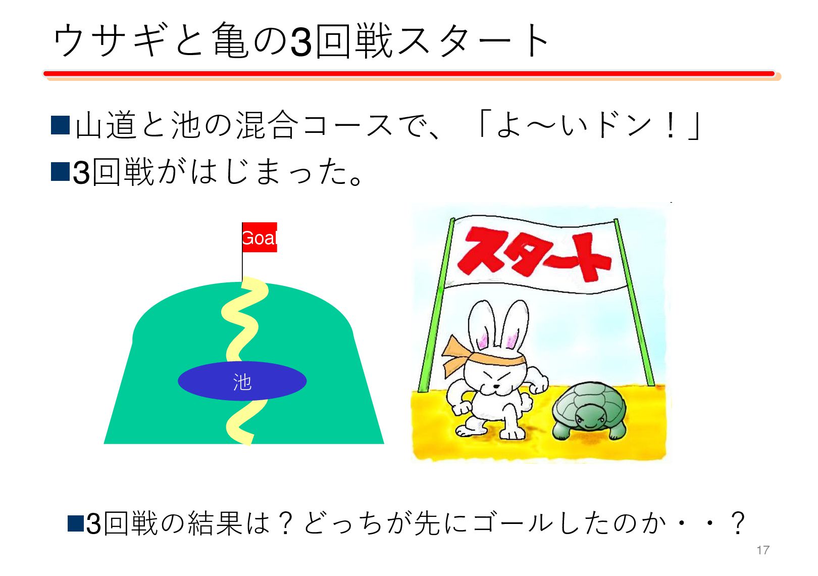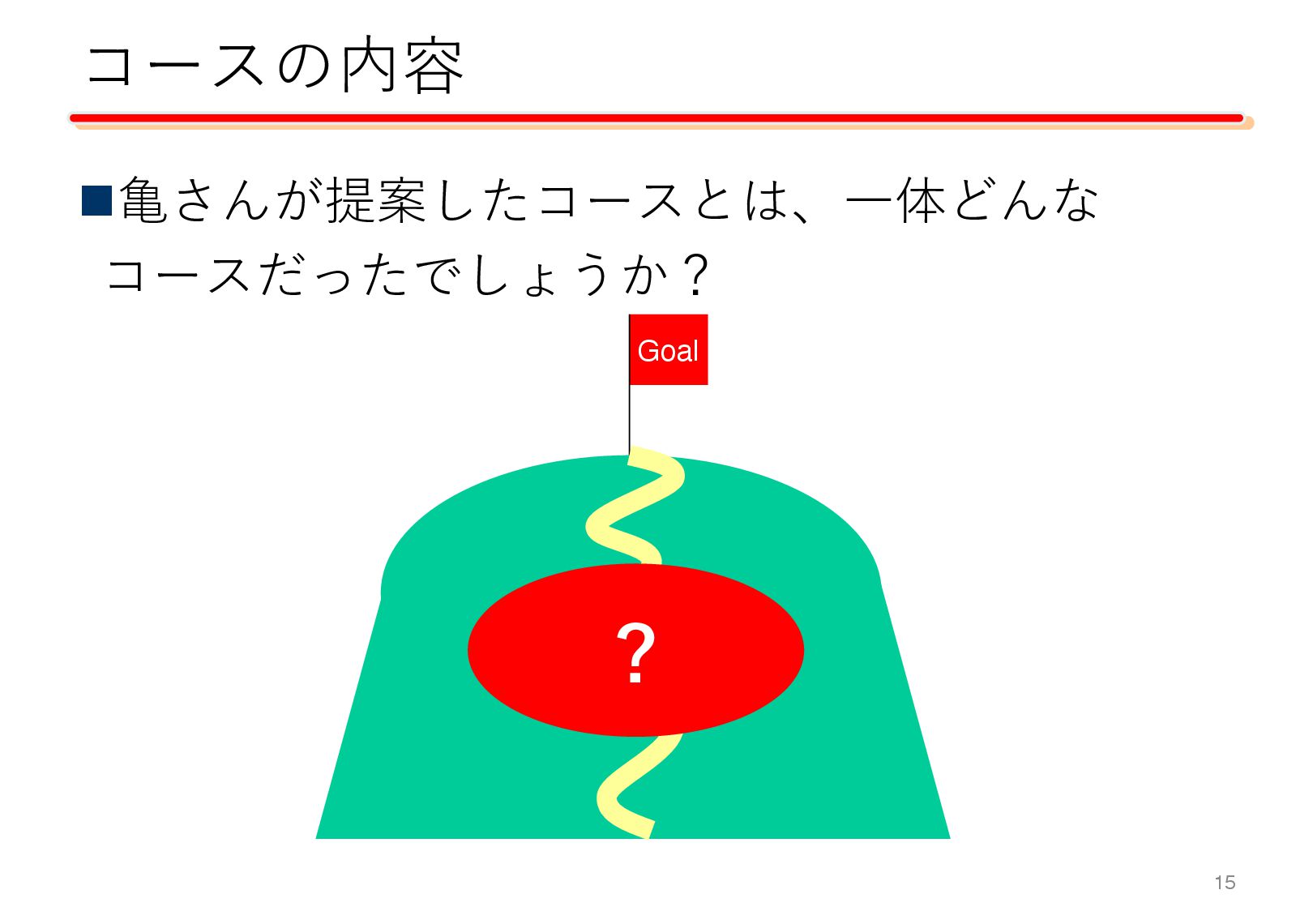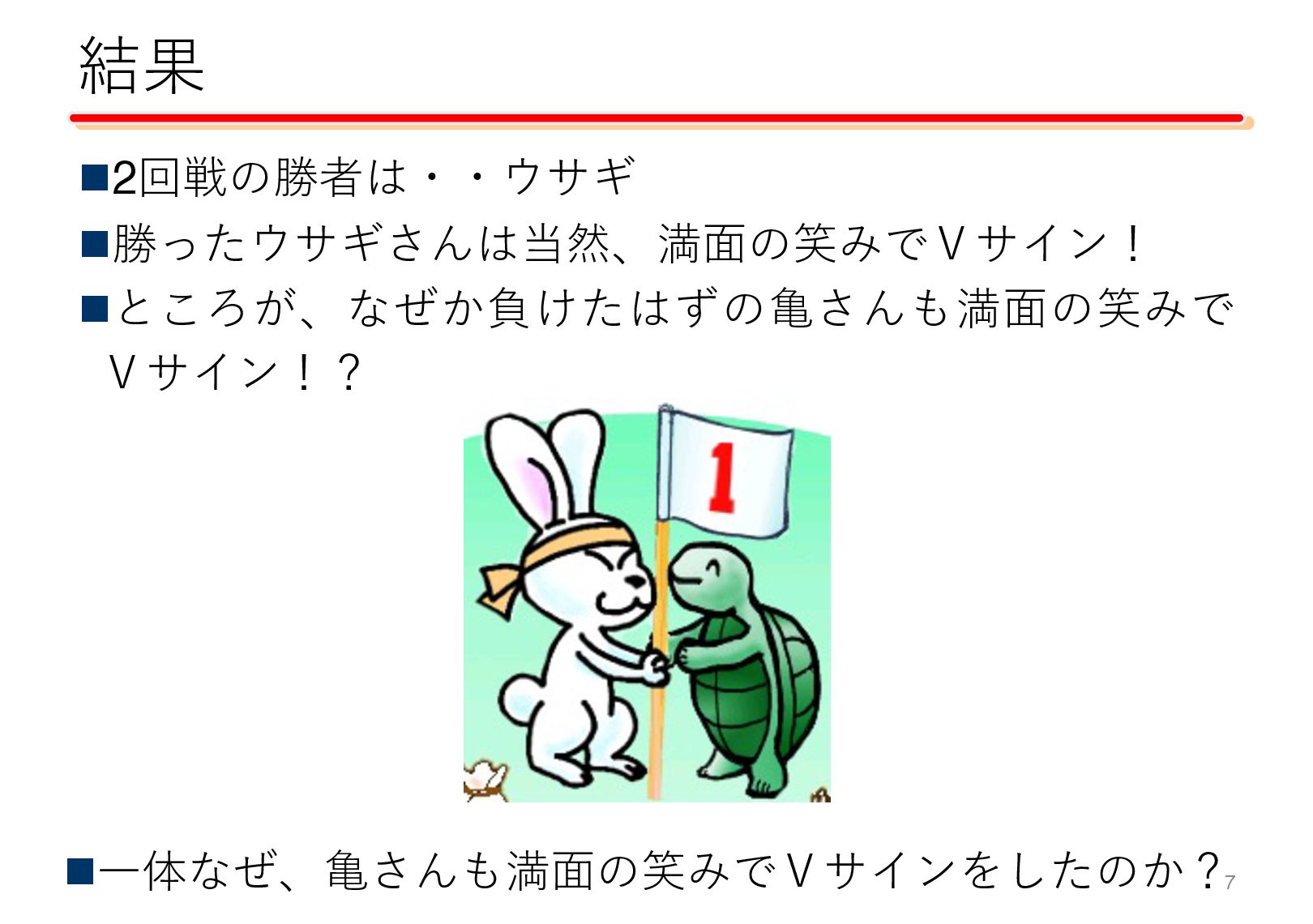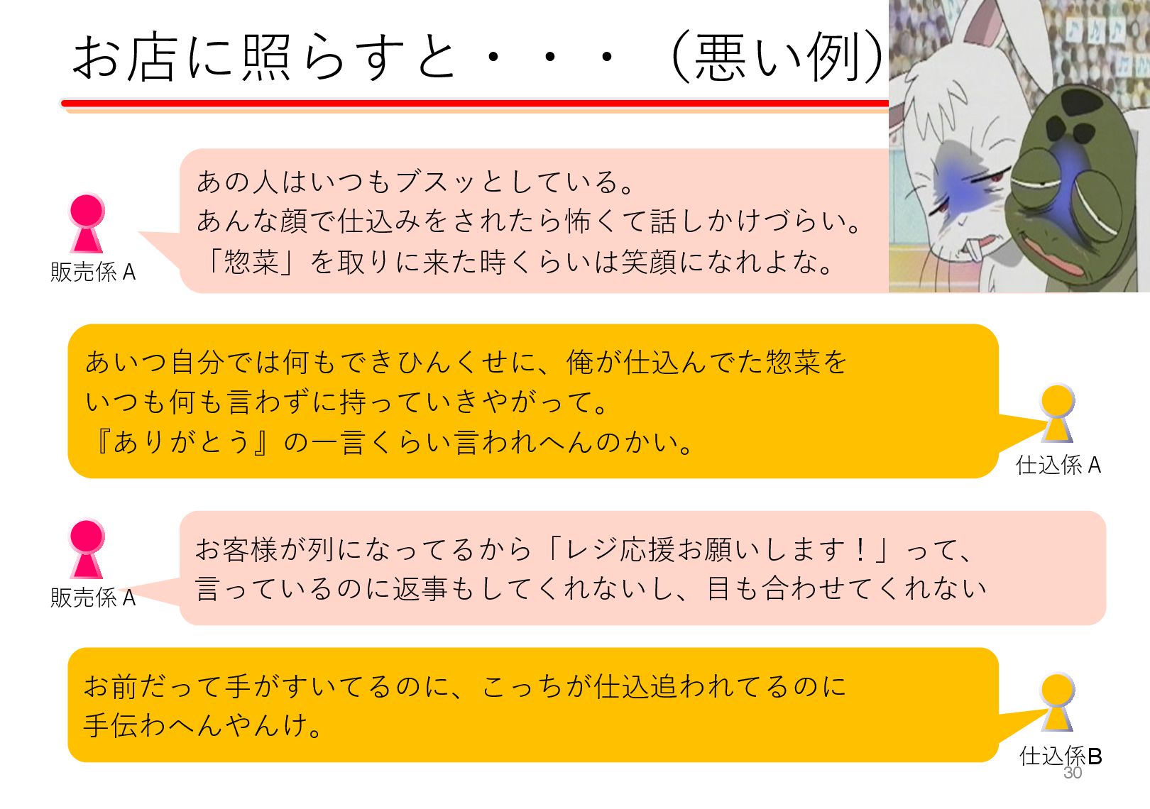 の⼤切さ l 決めたら必ず達成するこ との⼤切さ l 相⼿の「おかげ」に感謝 することの⼤切さ l ⻑所を認め合い、⾜し合 うことの⼤切さ l 仲間で⽬標を共有するこ との⼤切さ l いつまでも、新⼈(今)の気持ちで 「素直に」「謙虚に」学び続ける l 常に⽬標は⾃分で決め、宣⾔し、そして それをやり抜く l 毎⽇ちょっとしたことでもお互い 「ありがとう」を⾔う l スタッフ同⼠がお互い⻑所を認め合い、 ⼒を⾜し合う。 l 「お客様に喜んでもらう」という共通の ⽬標を毎⽇意識する(3⽅良しの実践) 37 あらすじ l ⾜が速いが、サボって寝て しまったウサギが負けた l ⾜は遅いが、登り続けた⻲が勝った l ⻲はウサギより遅かったが、 ⾃⼰新記録で⼭頂にたどり着いた l ⻲は、⾃分で決めた難しい⽬標を 成し遂げたことを喜んだ l 池は⻲がウサギを背負い、⼭道は ウサギが⻲を背負って共にゴールした l ⻲とウサギは共に喜んだ。