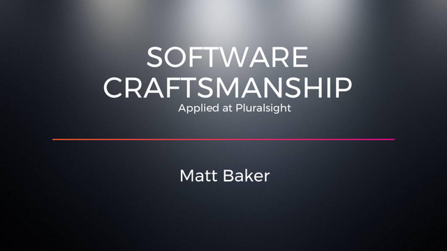 Applied at Pluralsight Matt Baker SOFTWARE CRAFTSMANSHIP