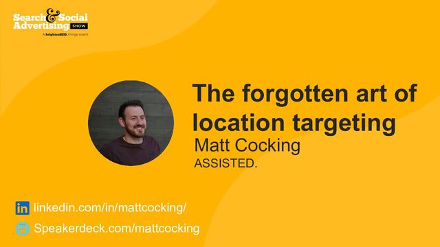 The forgotten art of location targeting Matt Cocking ASSISTED. Speakerdeck.com/mattcocking