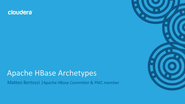 Messaging Data: • Realtime random writes: EMail, SMS, MMS, IM • Realtime random updates: Msg read, starred, moved, deleted • Reading of top-‐N entries, sorted by time • Records are of varying size • Some time series, but mostly random read/write • Schema • Row = user/feed/inbox • Row-‐Key = UID or UID + time • Column Qualifier = time or conversation id + time • Examples • Facebook Messages, Xiaomi Messages • Telco SMS/MMS services • Feeds like tumblr, pinterest