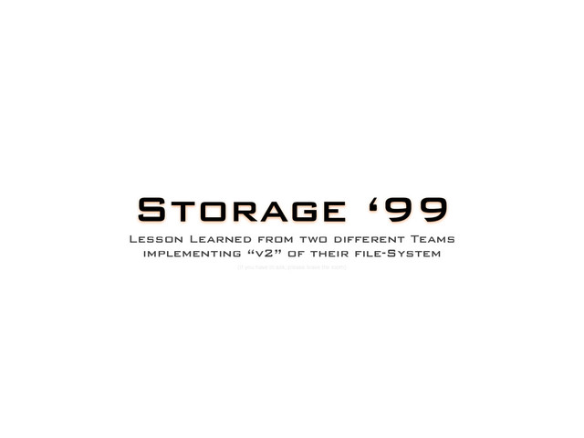 the internal bandwidth should be higher than the user one. Object-ID Replica 0 Replica 1 Replica 2 Next State Object Location Table Machine Address Machine Address Set Machine Address Entry 2 ^ 16 machines = 65,536 IPv6 length = 16 bytes full machine name 64 bytes (65,536 * 16) = 1MiB (65,536 * 64) = 4MiB (1,000,000 * 16) = 16MB (1,000,000 * 64) = 64MB Object Location Entry 12 oid + (2 * 3) replicas + 2state + 4next = 24 1GiB / entry = 44,739,242 = 44M objects (< 2^26) 4GiB / entry = 178,956,970 = 178M objects (< 2^28) 24GiB / entry = 1,073,741,824 = 1B objects (2 ^ 30) 96GiB / entry = 4,294,967,296 = 4B objects (2^32) uint64_t 200Kreq/sec = 2,924,712 years 200Mreq/sec = 2,924 years 200Greq/sec = 2.9 years uint96_t 1T req/sec = 38,334 years 10G req/sec * 65,536machines = 58 years …just an other rpc plugin at the RPC level. and it uses the “client api” like any other client, because if we need to implement another log at this level we have done something wrong on the storage layer (see the first slide :D)