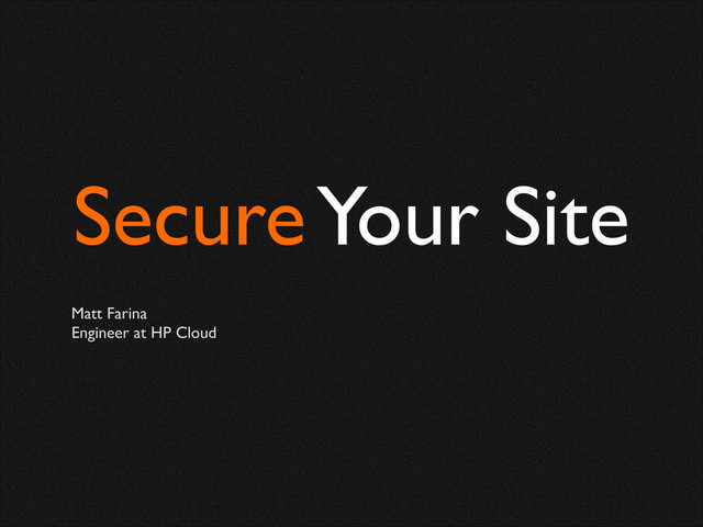 Secure Your Site Matt Farina Engineer at HP Cloud