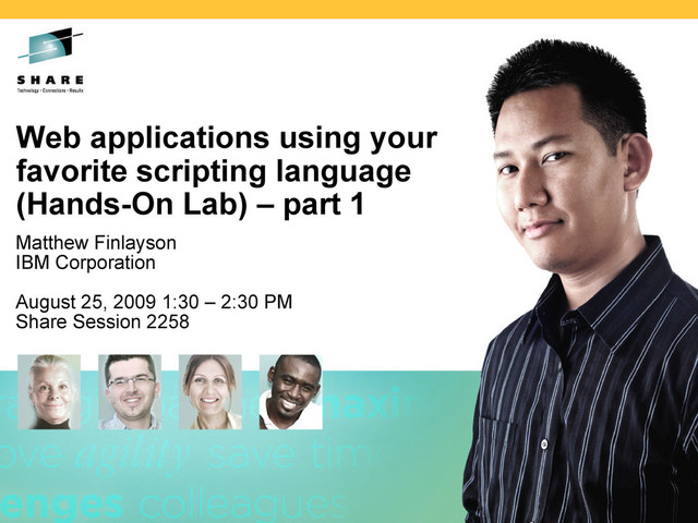 Designing useful CGI web applications does not require WebSphere and a team of experts. Using simple scripting languages and a basic knowledge of CGI programming and HTML, you can develop your own simple, yet very useful, web application! In this Hands-on Lab, you will learn the basics of CGI programming and HTML coding and develop your own CGI web application using the scripting language of your choice. Some knowledge of one of these languages will be helpful, however, beginners will still achieve success as step-by-step guides will be available for creating a CGI application using Perl, PHP, Rexx, and /bin/sh.