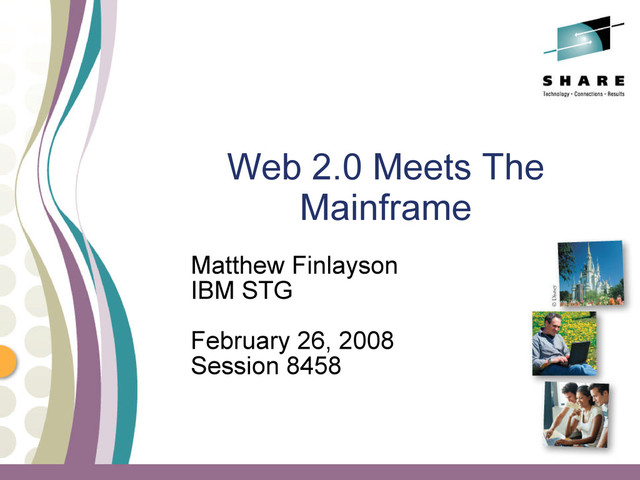 Why should mainframe folks care about Web 2.0? Increasingly Web 2.0 is permeating IT. At first glance, it's easy to disregard this as another fad that the mainframe crowd will have to weather. In reality though, Web 2.0 means finding new ways to connect information. Not only should the z/Series be involved in this shift but it has the potential to lead by exposing enterprise services to distributed software in a scalable and secure manner. This session will describe Web 2.0 and show how mainframe systems could be leveraged in this new technology.