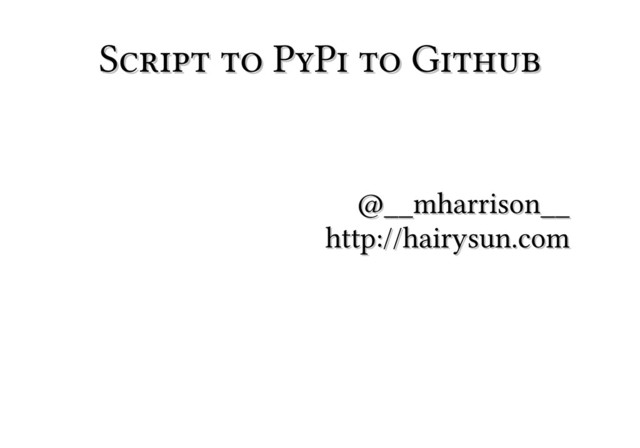 PyCon 2013 Tutorial: Script to PyPI to GitHub & More