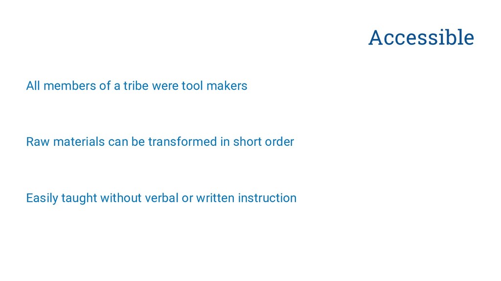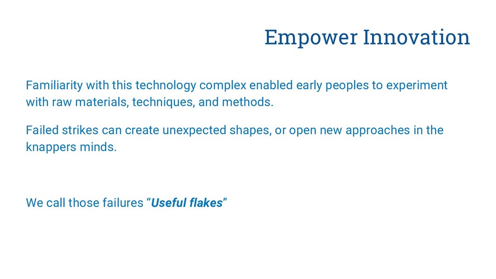 It can be said that early civilization is a direct result of the adoption of the simple, reusable, and highly adaptable stone technology used by our Paleolithic ancestors. A common platform (stone) and easily shared skills (knapping) empowered early humans to create all the tools necessary to survive and indeed flourish. Hunting, fishing, butchering, shelter, clothing, and early agricultural techniques were all made possible by the simple act of banging a few rocks together in a clever way. Moreover, the technology complex of early peoples enabled our first explorations of the benefits of failure: a mis-strike to a rock creates a new shape, a new tool… a useful flake.