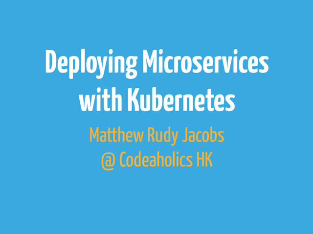 A talk on Kubernetes given at Codeaholics in Hong Kong on Wednesday June 10th 2015