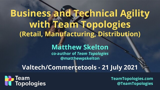 Matthew Skelton, co-author of Team Topologies, shares insights from organizations in several different industry sectors including banking, financial services, insurance, retail, and leisure.