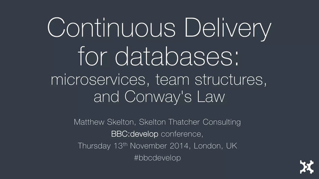 The way we think about data and databases must adapt to fit with dynamic 'cloud' infrastructure and Continuous Delivery. The need for rapid deployments and feedback from software changes combined with an increase in complexity of modern distributed systems and powerful new tooling are together driving significant changes to the way we design, build, and operate software systems. These changes require new ways of writing code, new team structures, and new ownership models for software systems, all of which in turn have implications for data and databases. In this talk, we will look at the factors driving increased deployability, the pattern of microservices as a way to improve deployability, changes to
