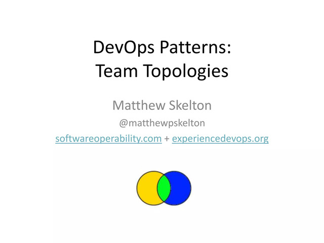 Update: see newer patterns at http://devopstopologies.com/ and the book Team Topologies at https://teamtopologies.com/book