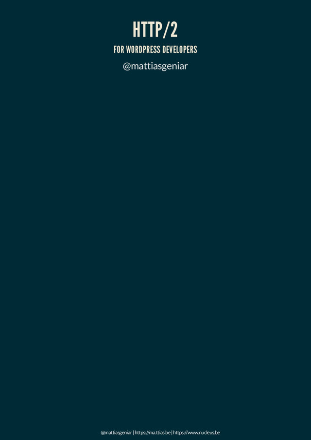 The talk explains the HTTP/2 protocol (and some history and details on HTTP/1.1), aiming particularly at PHP & WordPress developers.