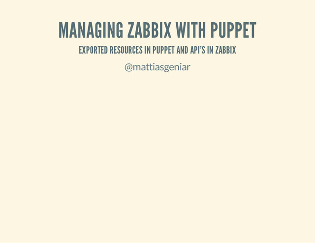 / ... @ Nucleus.be Wrote MoZBX and gave talk at ZabbixConf in Riga in 2012 Blogger at http://ma.ttias.be WHO IS NUCLEUS? Uptime-as-a-Service Hosting, hosting & hosting Many servers, many automations