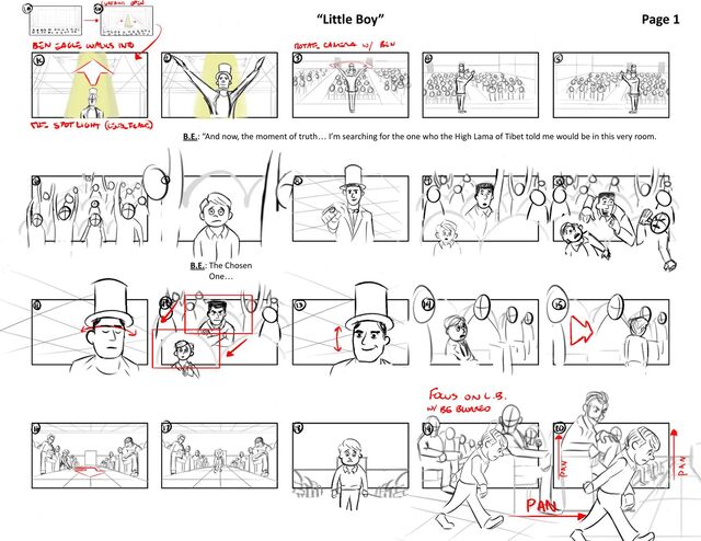 next to my baby sister. I want her to feel taller. Ronnie: How’s the weather down there, Little Boy?! B.E.: Little Boy, huh? B.E.: I like it... B.E.: Ladies and gentlemen. B.E.: The Chosen One! B.E.: What you’re about to see, is not an illusion. B.E.: You’ll bear witness to a profound experience... B.E.: The movement of an inanimate object through inner power... B.E.: But I’m not going to perform it… “Little Boy”