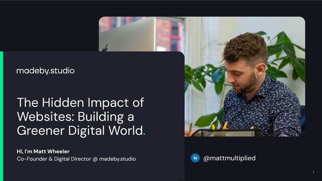 The speaker is Matt Wheeler, Founder and Director of madeby.studio, a Leeds-based website sustainability consultancy.
