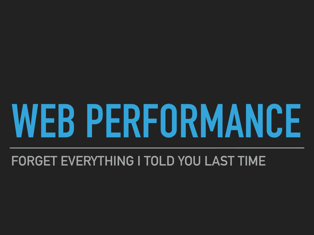 Web Performance: Forget Everything I Said Last Time