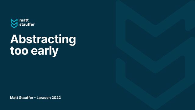 This talks shares ideas on how to consider abstractions in general, and then dives into some very common premature abstractions, the costs and benefits of each, when they make sense and when they don't, and how to approach them when you do choose to use them.