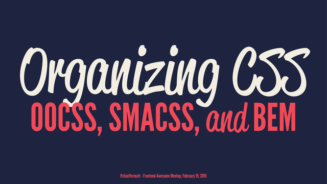 "Organizing CSS" talk, local meetup version Gainesville Frontend Awesome - February 19, 2015