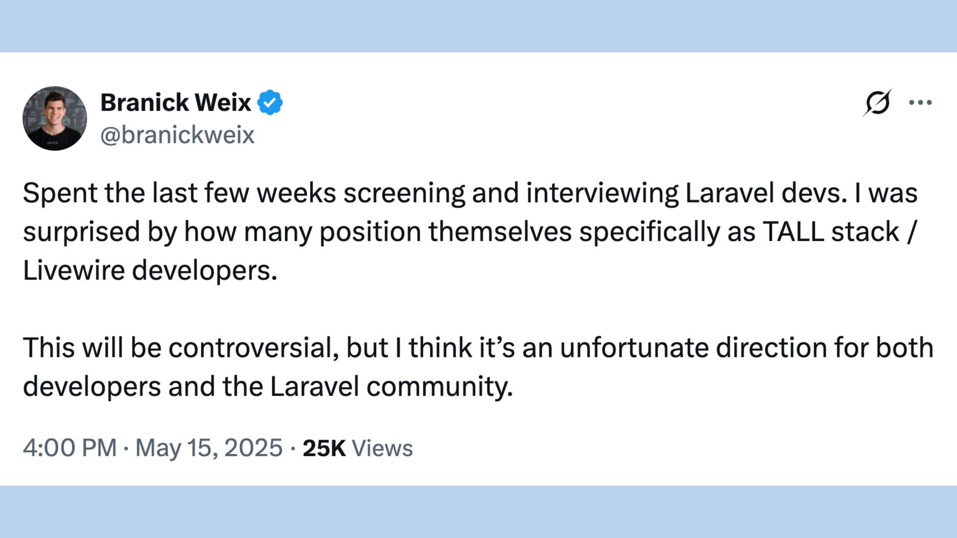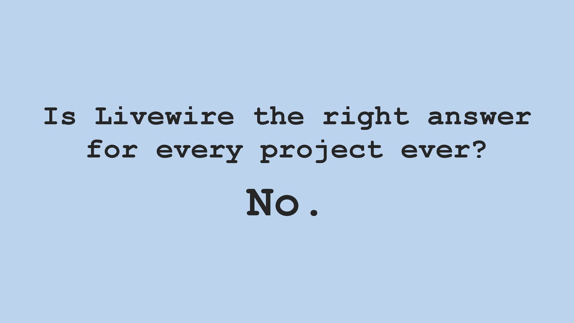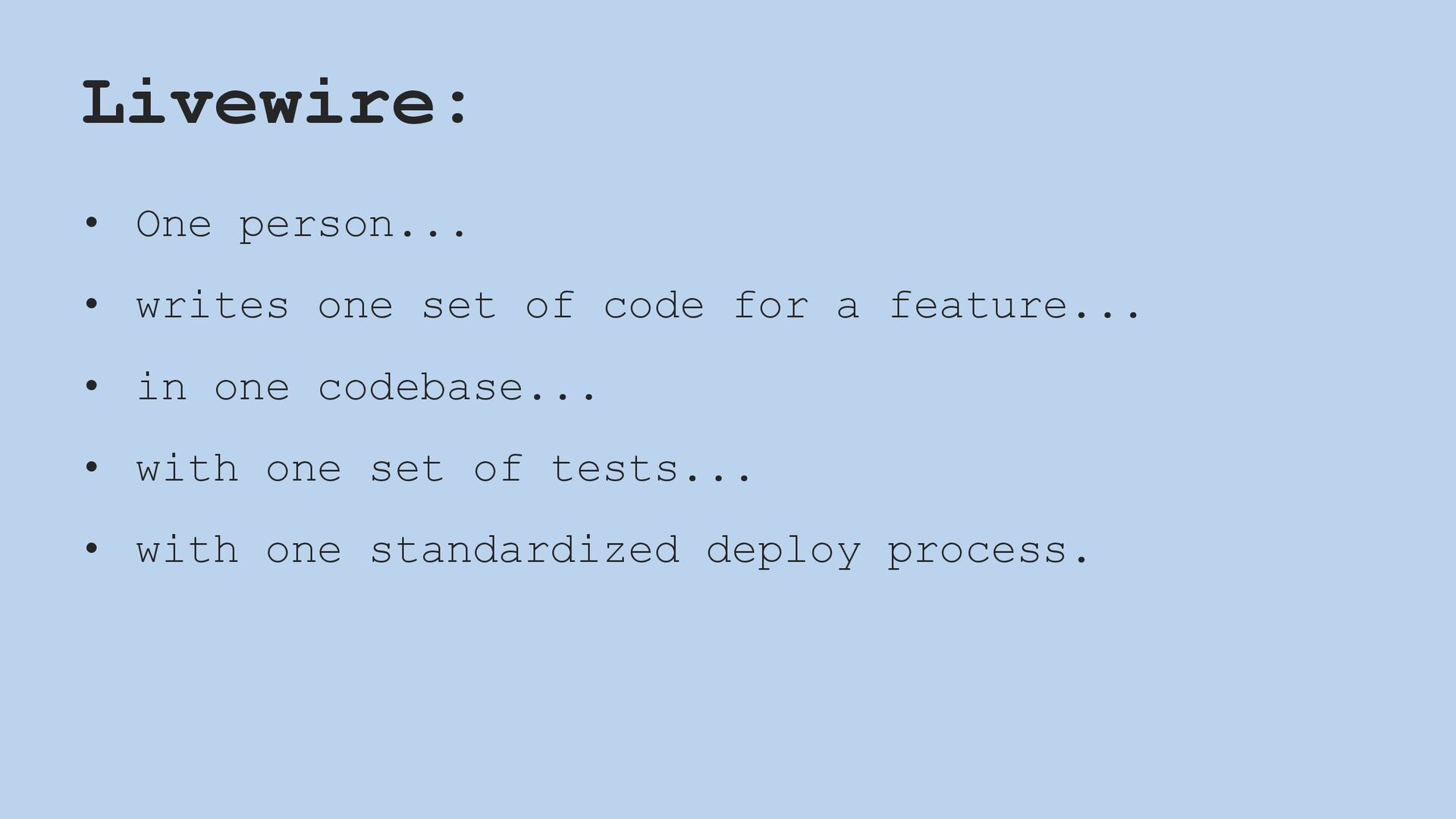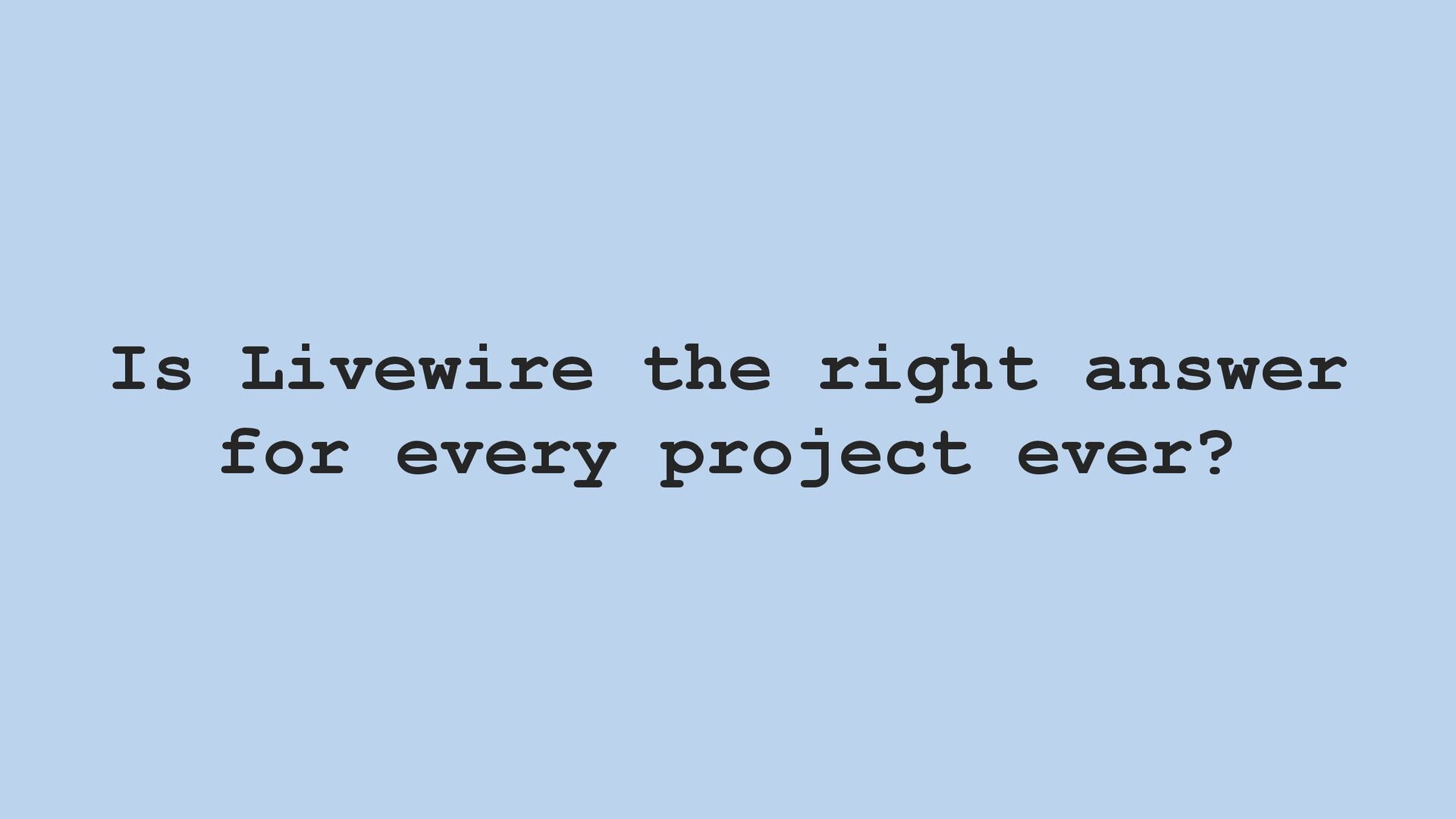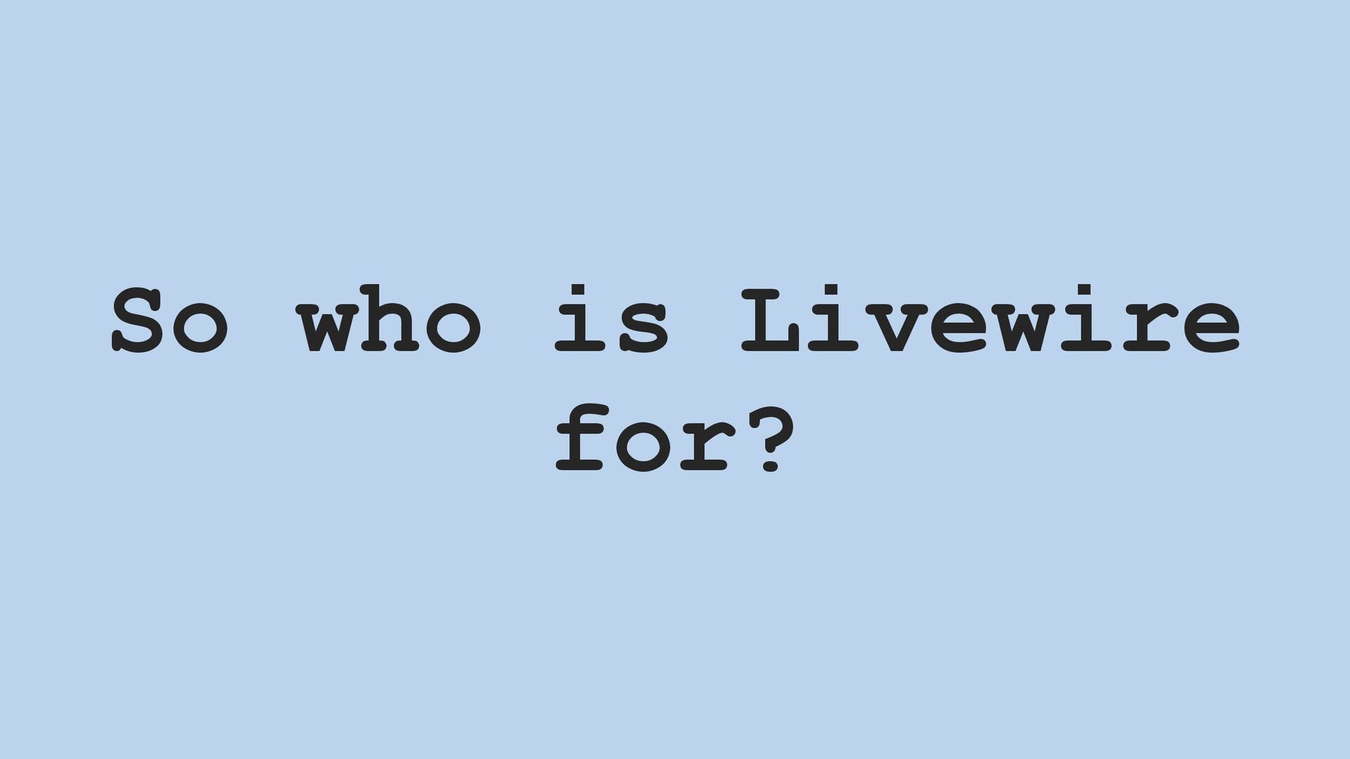 In this talk, I give the case for why a business might consider choosing Livewire–and why programmers might consider learning it.