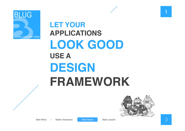 As a developer you can't get away anymore with an application that just works: your users expect it to look great too. Luckily there are many frameworks available to help you. In this session we will talk about some of the leading contenders such as Bootstrap, Kendo UI, jQuery Mobile, Blueprint, 960 grids, show some demos and then open up the floor to have a discussion... What are the pros and cons of every framework, how do you pick one, and why not just use the standard options that IBM offer?