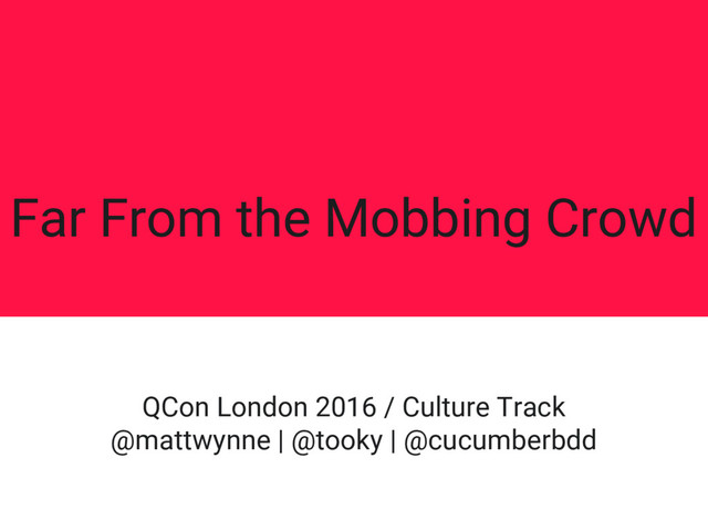 1. Far From the Mobbing Crowd QCon London 2016 / Culture