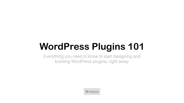 An introduction to developing WordPress plugins, presented at the first ever WordPress Contributor Workshop day on the 27th of March 2015 in Cape Town, South Africa.