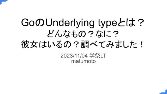GoのUnderlying typeとは? どんなもの?なに? 彼女はいるの?調べてみました! 2023/11/04 学祭LT matumoto