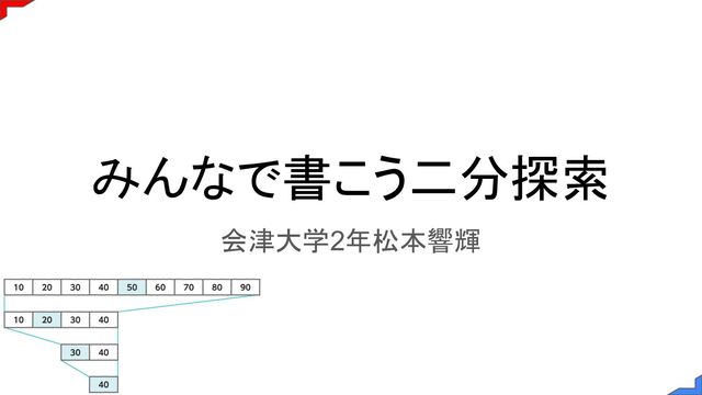 みんなで書こう二分探索 会津大学2年松本響輝