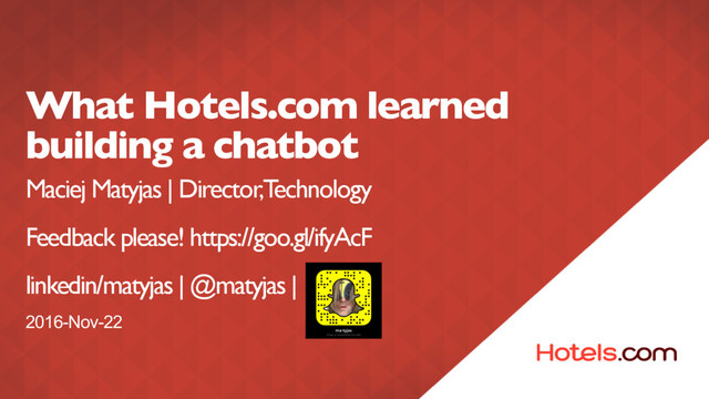 easy - NLP improves the UX of a chat bot - Personalise, personalise, personalise - Go to the bot users - Conversations are stateful - A bot with personality is easier to build and use What we learned by building a bot