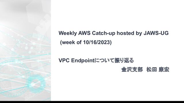 https://jaws-ug.doorkeeper.jp/events/165372 の勉強会でLTした2023/10/16週分 https://aws.amazon.com/jp/blogs/news/aws-weekly-20231016/ のキャッチアップでの資料です。
