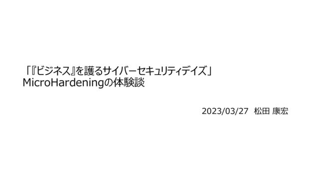 「『ビジネス』を護るサイバーセキュリティデイズ」 MicroHardeningの体験談 2023/03/27 松田 康宏