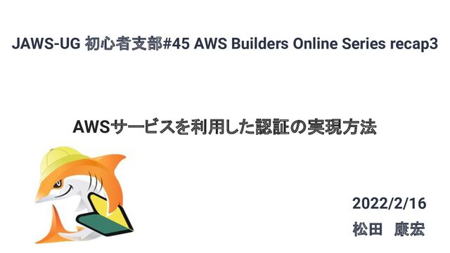 2022/2/16(水)に行われた【JJAWS-UG 初心者支部#45 AWS Builders Online Series recap3】にて発表した「AWSサービスを利用した認証の実現方法」の資料です。