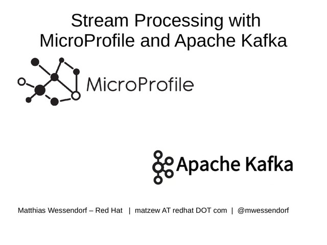 Integrating MicroProfile and Kafka • CDI Extension and Swarm Fraction • Outlook Matthias Wessendorf – Red Hat | matzew AT redhat DOT com | @mwessendorf